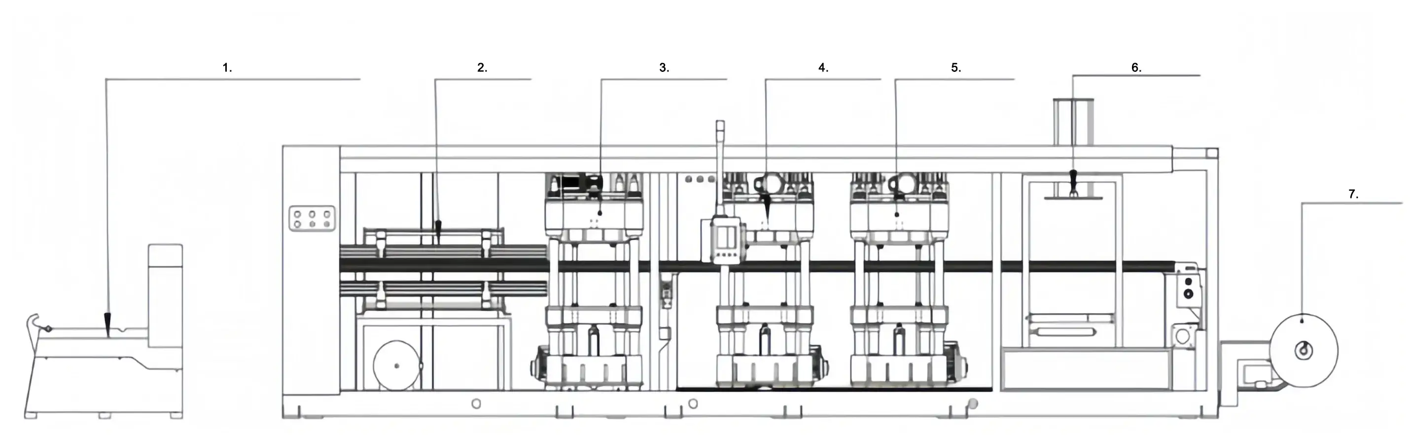 Our negative pressure three-station thermoforming machine boasts extensive case studies demonstrating its highly successful capability to simultaneously perform trimming, punching, and waste removal during the punching station for PS/PET products.